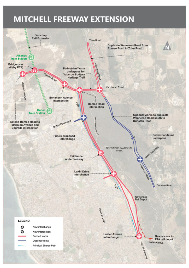 The below map indicates the Mitchell Freeway Extension in context with the City of Wanneroo and other initiatives.
