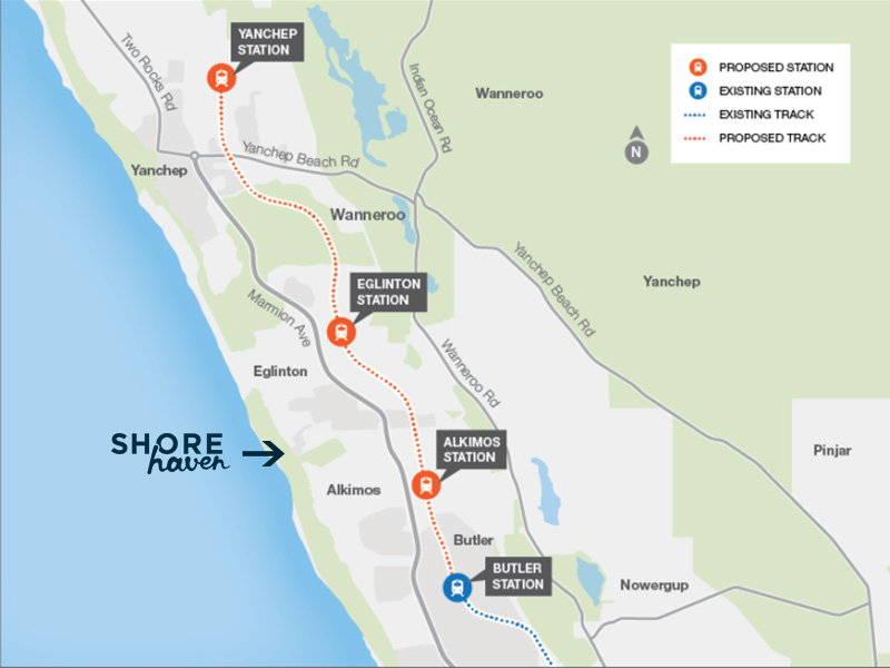 Here at Shorehaven, we’re excited to be benefiting from the Yanchep Rail Extension, delivered as a part of METRONET. The extension will put us within 2-3 minutes reach of either future Eglinton or Alkimos train stations, and within 41 minutes* of Perth CBD.