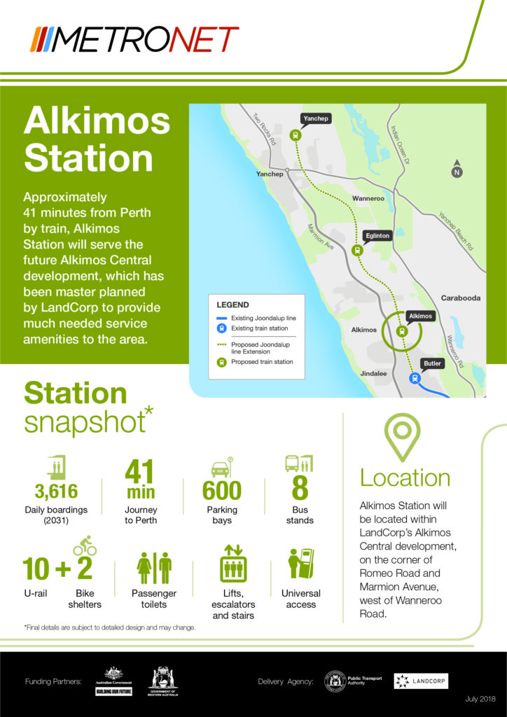 *Approximate figure from Alkimos Train Station, as stated by METRONET.